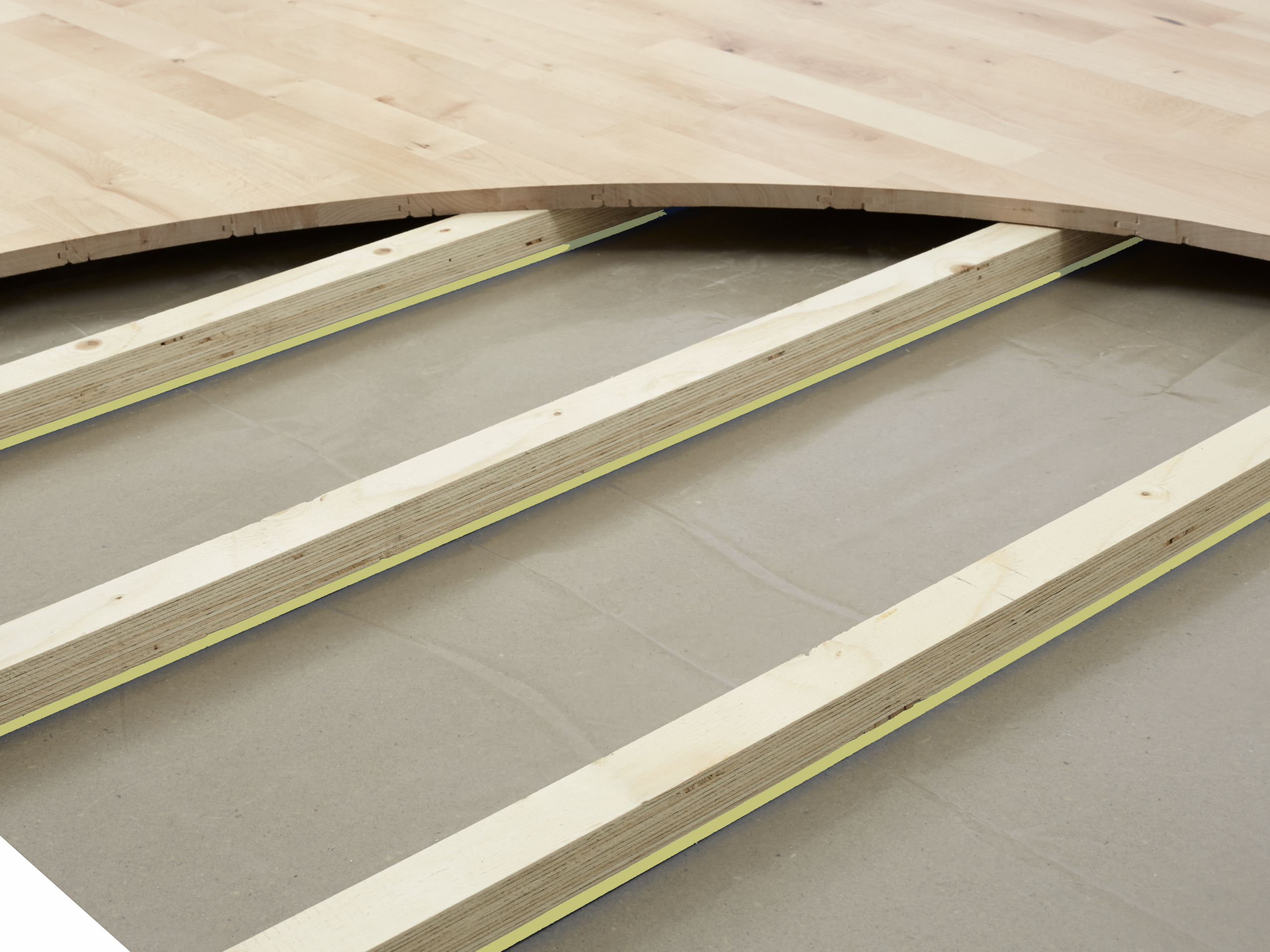 A Junckers sports floor is made from 100% solid hardwood and will last for generations. Each floor board is made from two rows of staves and is tongue and groove jointed all round.