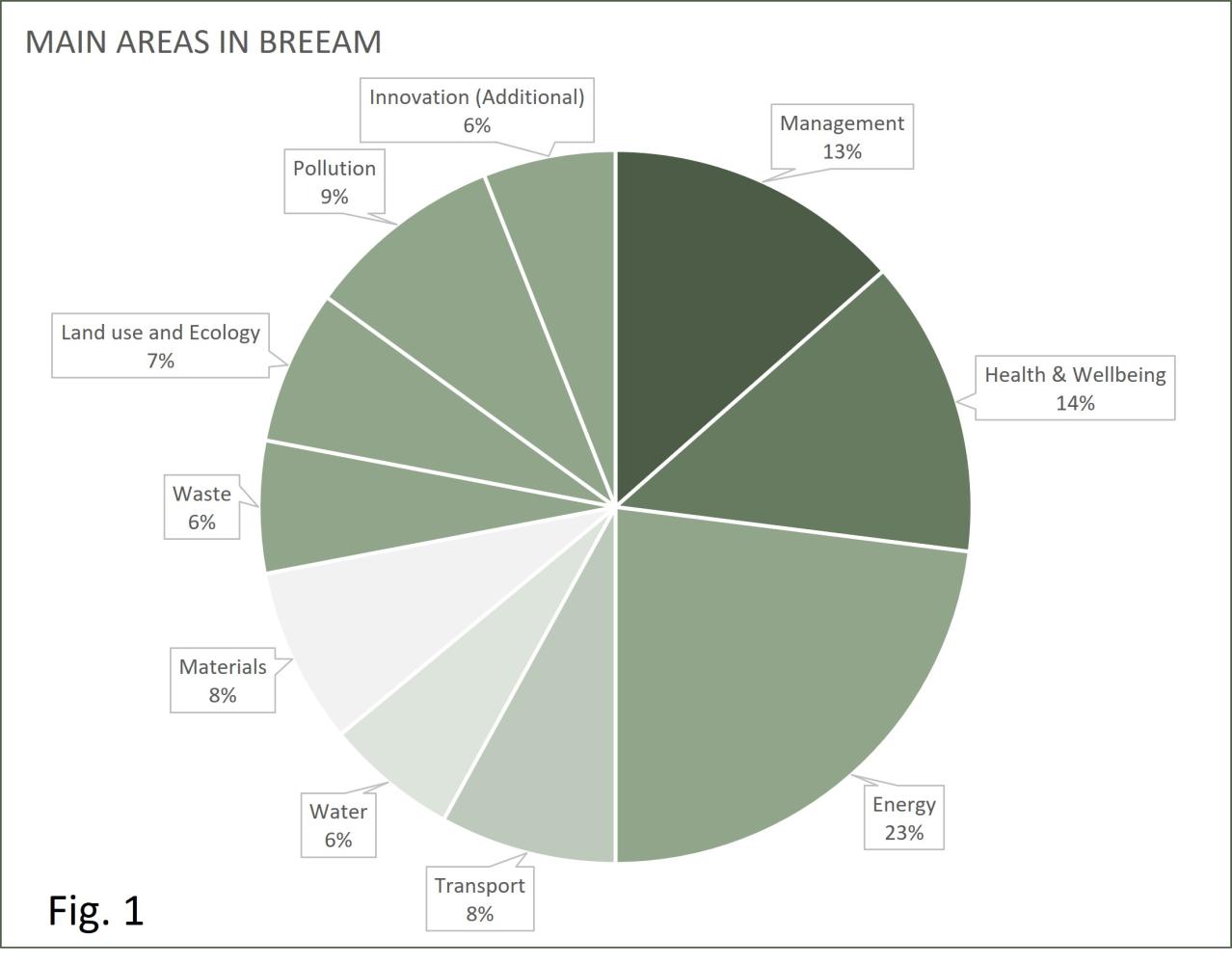 A BREEAM assessment is based upon nine main areas, which are weighted differently in the overall assessment.