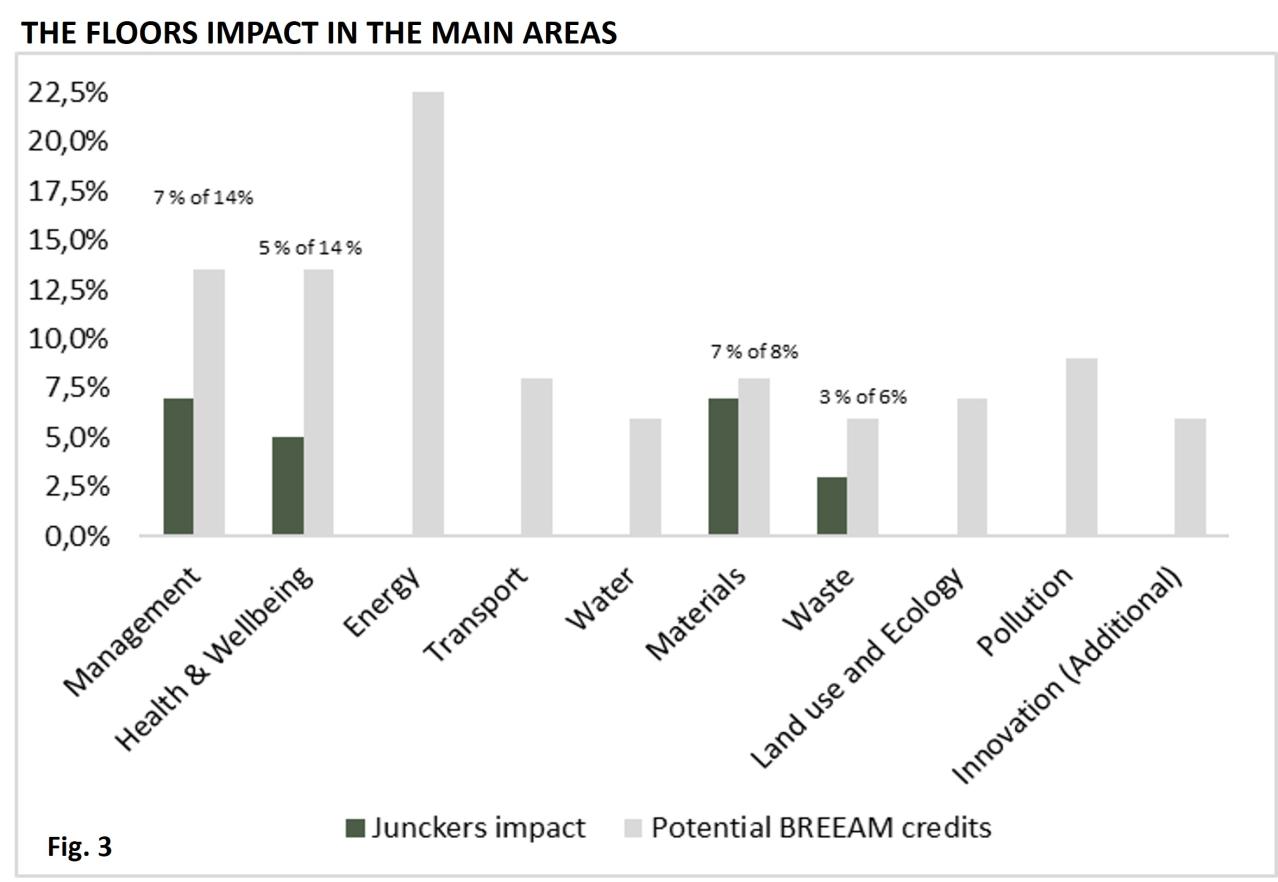 Figure 3 provides an example of how Junckers solid hardwood flooring contributes to the main BREEAM areas in relation to office buildings.