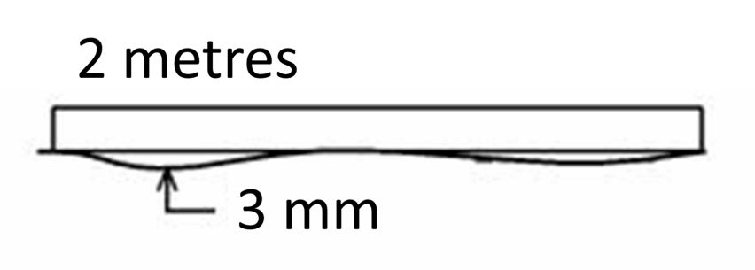 Deviations are measured as gaps under the straight edge. The surface must be smooth. Any irregularities must be corrected by grinding or by using a self levelling compound.