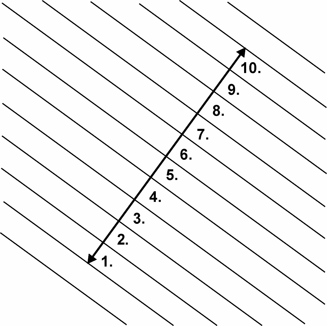 Regular levelled Datum rows should now be set out maintaining the 411 mm batten centres.