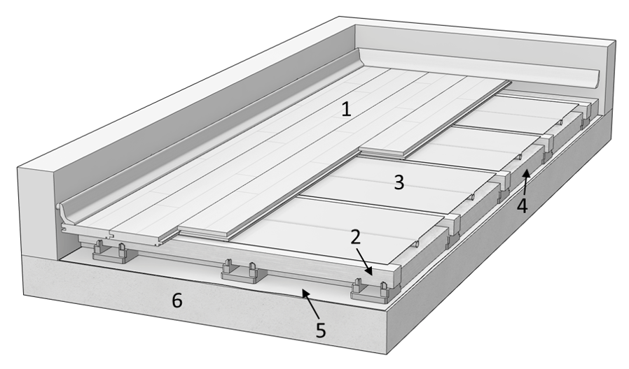 Table 3 shows the floor system in relation to the load classes in ENV 1991-2-1:1995, where the load-bearing strength requirements are complied with and the floor has an acceptable rigidity. The floor system's rigidity in relation to wheel loads is also shown.