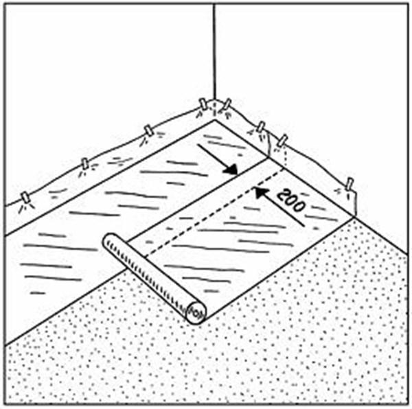 The moisture barrier must be laid with an overlap of 200 mm at all joints, continuing up walls etc.