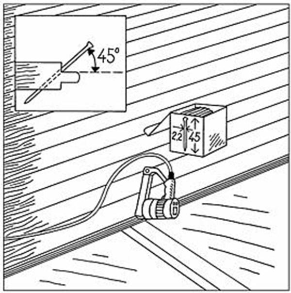 Do not nail closer than 50 mm to stave joints and never in the floorboard end joints.