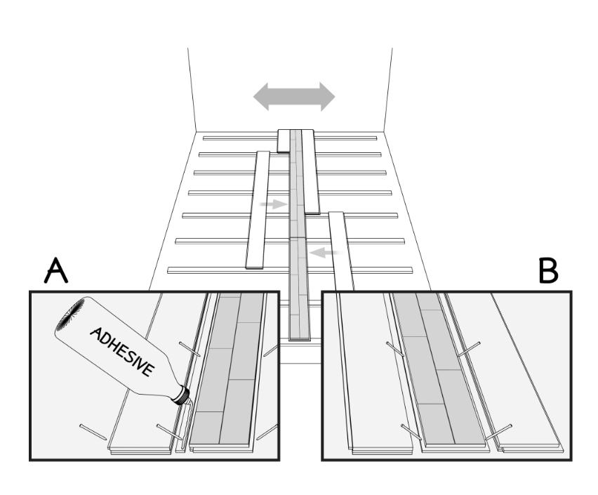 - The two centre floorboards are joined with a loose tongue which must be glued to one of the floorboards in the full length of the floorboard.