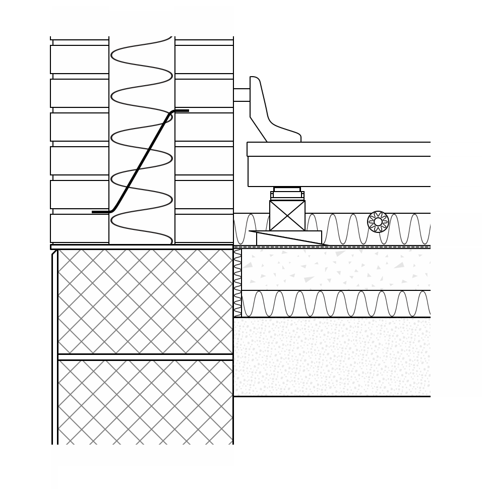 Bushings must be fitted so that both vertical and horizontal movement of the floor is unimpeded. The size of the internal opening of the bushing must exceed that of the post by minimum 40 mm. At the outermost edges of the floor all bushings are mounted